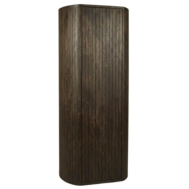 Hoge Kast Miya combineert moderne vormgeving met een warme espresso afwerking. De afgeronde zijkanten zorgen voor een zachte en stijlvolle uitstraling, terwijl de verticale latten op de voorzijde een subtiel speels effect creëren. De diepe espresso kleur geeft de kast een luxe en sfeervol karakter.