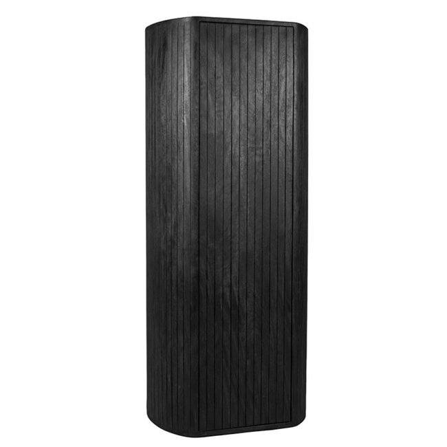 Bergkast Miya van LABEL51 combineert een strak, eigentijds design met de warme uitstraling van massief mangohout. De diepe Zwart kleur geeft de kast een luxe en sfeervolle uitstraling. De afgeronde zijkanten zorgen voor een zachte vormgeving, terwijl de verticale houtstructuur het meubel een speels en verfijnd karakter geeft.