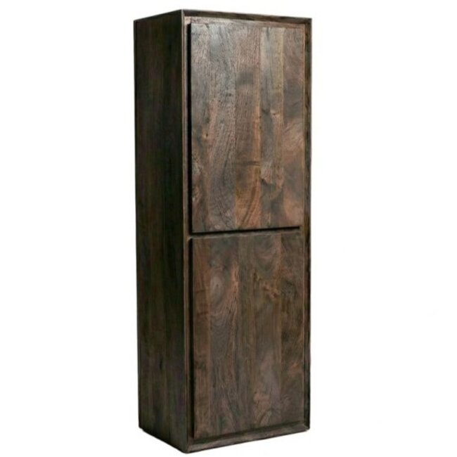 Hoge Kast Nori kenmerkt zich door zijn minimalistische ontwerp met rechte lijnen en een rustige uitstraling. De diepe espresso kleur geeft het mangohout een warme en luxe look. Dankzij het greeploze design oogt de kast modern en strak, waardoor hij perfect past binnen moderne, industriële en hotel chique interieurs.