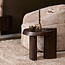Het ronde tafelblad rust op twee brede, cilindervormige poten die zorgen voor een stabiele constructie en een opvallend silhouet. De combinatie van het natuurlijke hout en de strakke, moderne lijnen maakt deze bijzettafel tot een stijlvolle blikvanger. Dankzij de diepe bruine kleur straalt Rava warmte en elegantie uit, terwijl de afgeronde vormen zorgen voor een zachte, harmonieuze look.