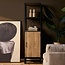 De boekenkast beschikt over open vakken waarin je boeken, woonaccessoires of planten kunt presenteren. Achter de deur bevindt zich een extra legplank, ideaal om spullen netjes uit het zicht op te bergen. Zo combineert deze kast open en gesloten opbergruimte op een slimme manier.