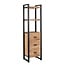 Boekenkast Britt 55 cm met drie lades is een smalle en hoge opbergkast met een stoere industriële uitstraling. Het mangohout met lichte finish wordt gecombineerd met een zwart metalen frame en handgrepen. Dankzij de combinatie van lades en open legplanken Lees meer.