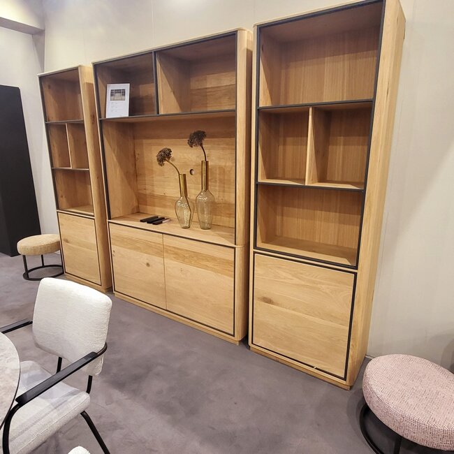 De Oulu TV-kast 150 cm in naturel eiken heeft 3 open vakken en 2 deuren. Een stijlvol en praktisch tv-meubel in Scandinavische stijl. Lees meer.
