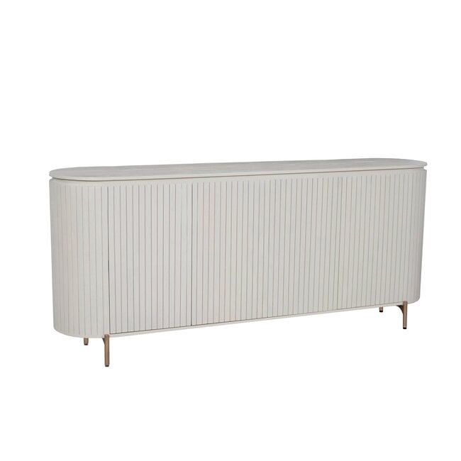 Het subtiele verticale lijnenspel in het hout zorgt voor een verfijnde en luxe uitstraling, waardoor dit dressoir een echte blikvanger is zonder overheersend te zijn.