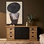 De zwarte metalen deuren geven het dressoir een industriële touch en vormen een krachtig contrast met het lichte hout. De metalen handgrepen versterken het robuuste karakter en zorgen voor een moderne uitstraling die perfect past binnen industriële, moderne en landelijke interieurs.