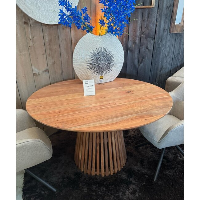 De Eetkamertafel Burundi is een zeer mooie en unieke eetkamertafel gemaakt van Acaciahout. De onderkant is gemaakt van houten latten wat het een erg unieke look geeft. Het blad is gemaakt van verschillende houten planken waardoor elke eetkamertafel uniek is. De eetkamertafel is beschikbaar in de maten: 120 en 130 en als salontafel. Daarnaast is de tafel ook verkrijgbaar in het zwart.