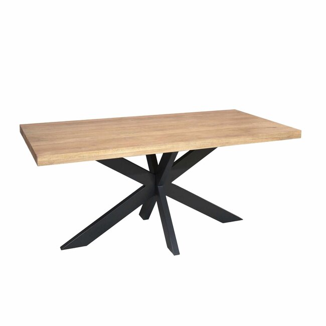 Stoere eettafel Dakota 160 cm met massief mangohouten blad en zwart metalen matrixpoot. Industriële rechthoekige eetkamertafel van Starfurn. Bekijk nu! Lees meer.
