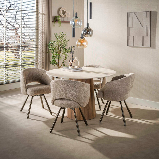 Met Eettafel Romano Centro rond Ø120 cm kies je voor een duurzame, onderhoudsvriendelijke en elegante eettafel die functionaliteit en verfijnd design perfect samenbrengt.