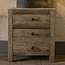 Met zijn drie ruime laden biedt dit kastje verrassend veel opbergruimte voor kleinere spullen. Het past perfect naast het bed als nachtkastje, in de hal als bijzetkastje of in de woonkamer als subtiele opberger. De donkere metalen knoppen vormen een mooi contrast met het warme hout en versterken de rustieke, natuurlijke uitstraling.