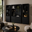 De asymmetrische indeling met 4 open vakken geeft de kast een speels en eigentijds karakter. De zwarte afwerking zorgt voor een luxe uitstraling en maakt deze kast ideaal voor moderne en industriële interieurs.