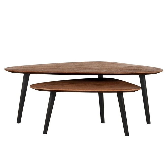 Salontafel Rock van LABEL51 is een veelzijdige salontafelset die perfect inspeelt op flexibiliteit en design. De set bestaat uit twee tafels die je deels onder elkaar kunt schuiven, waardoor je de opstelling eenvoudig aanpast aan jouw wensen en beschikbare ruimte.