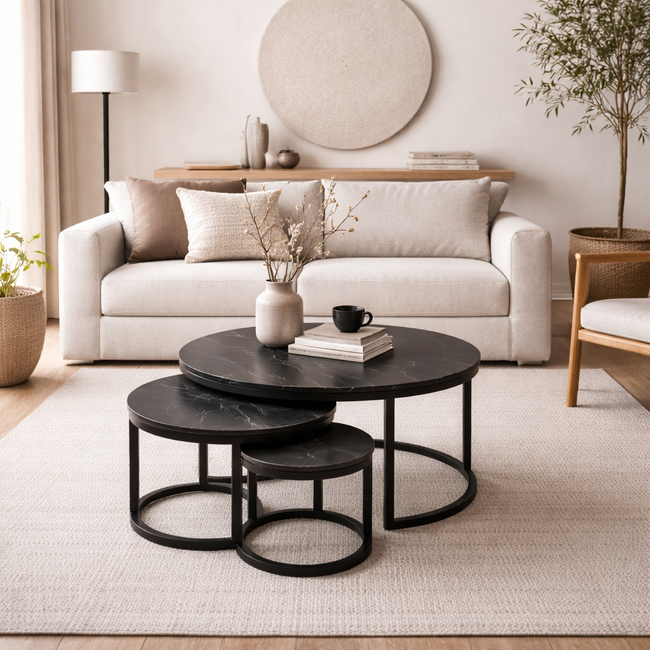 Op zoek naar een luxe en stijlvolle salontafel? Dan is salontafel set perfect voor in jouw interieur! Het marmeren blad is ongeveer 2 cm dik en heeft een mooie glans. De combinatie van het metalen frame en marmeren tafelblad, geeft deze set een luxe uitstraling. Het materiaal marmer is een zeer sterke steensoort en daarnaast gemakkelijk schoon te houden.