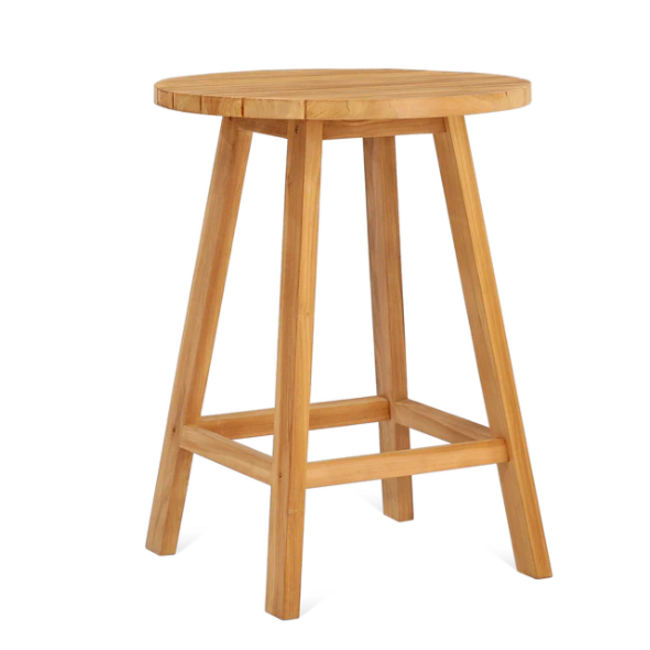 Combineer deze ronde teak bartafel met bijpassende teak barstoelen voor een sfeervolle en functionele buitenbar.