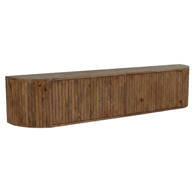 Tv-meubel Miya 190 cm in Nature Smooth mangohout is een royaal en stijlvol meubel met een warme, natuurlijke uitstraling. De afgeronde zijkanten en verticale latstructuur zorgen voor een modern design met zachte lijnen. Perfect als elegante basis in een r Lees meer.