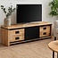 Het TV Meubel Novelle 160 cm van Benoa is de ideale combinatie van stoer design en praktisch gebruiksgemak. Dit meubel is vervaardigd uit duurzaam mangohout en afgewerkt met zwarte metalen details. Het robuuste hout zorgt voor een warme, natuurlijke uitstraling, terwijl het zwarte staal het geheel een industriële touch geeft – een echte blikvanger in je interieur.
